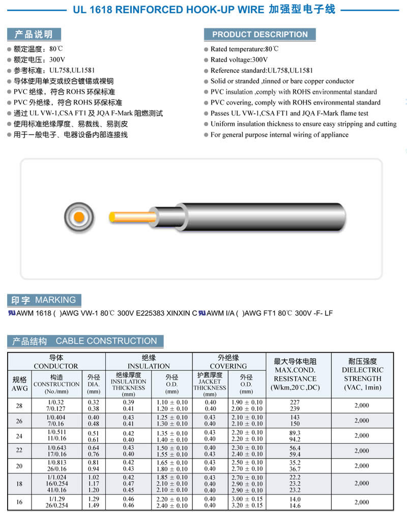 UL 1618 REINFORCED HOOK-UP WIRE