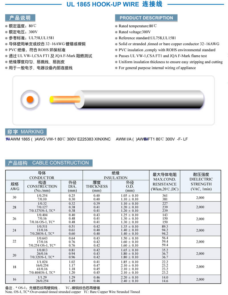 UL 1865 HOOK-UP WIRE