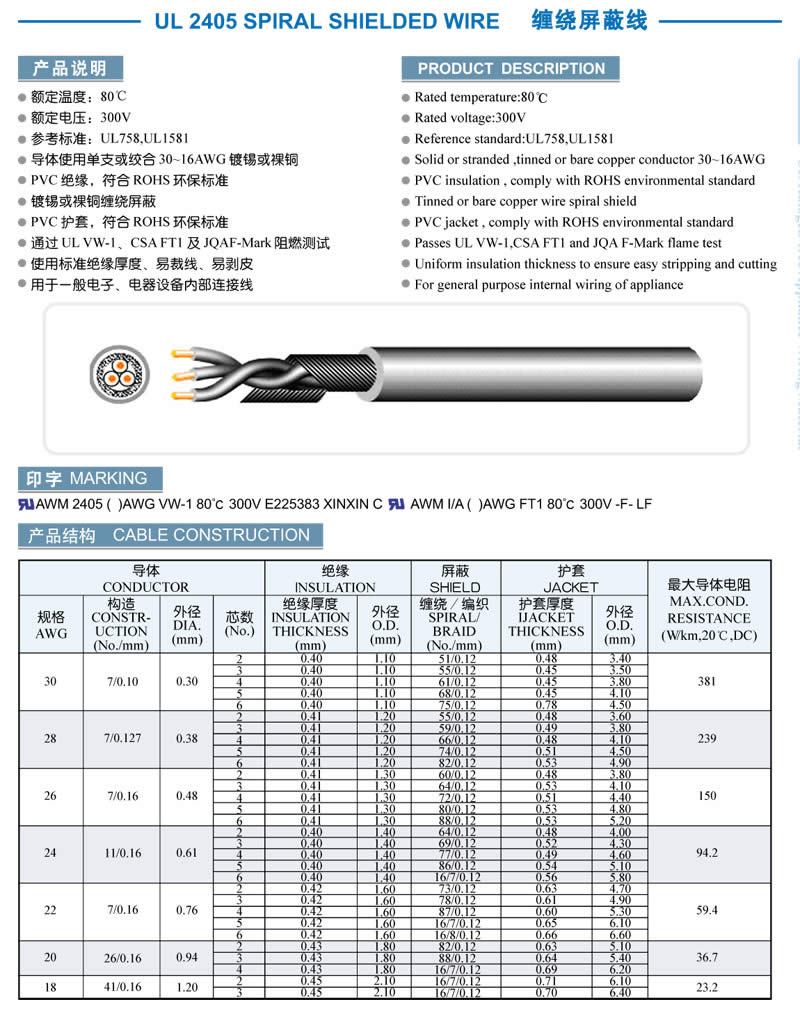 UL 2405 SPIRAL SHIELDED WIRE