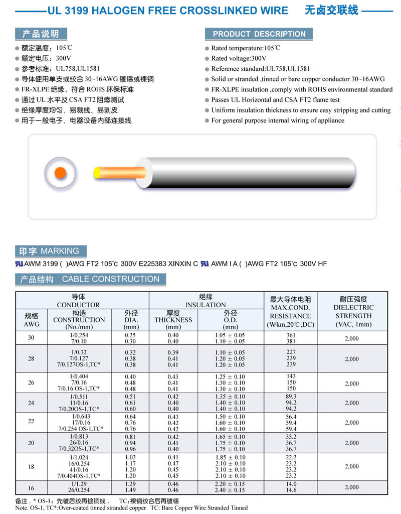 UL 3199 HALOGEN FREE CROSSLINKED WIRE