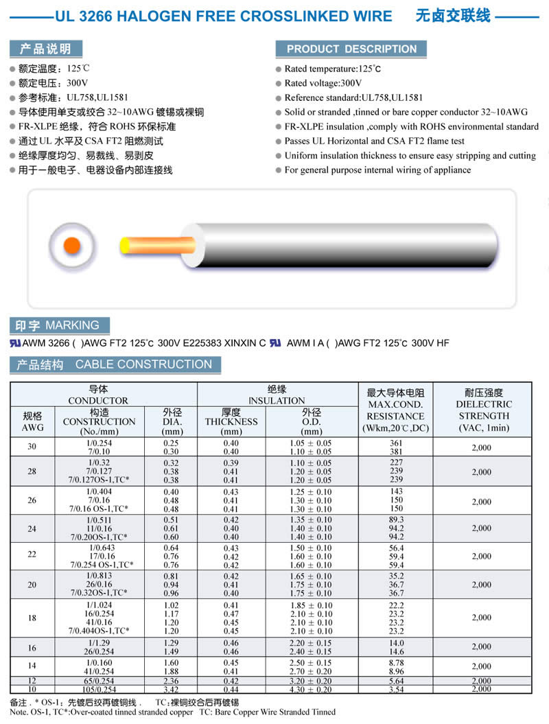 UL 3266 HALOGEN FREE CROSSLINKED WIRE
